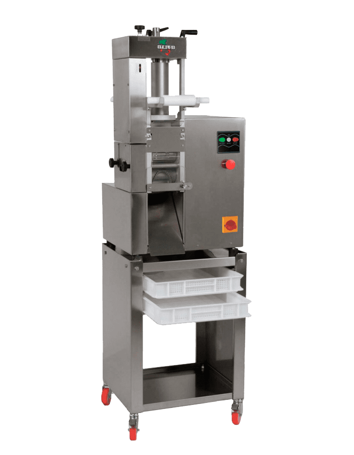 La presse à pâtes PR50S offre une capacité de production adaptée aux établissements à fort débit souhaitant produire quotidiennement des quantités significatives de pâtes fraîches. Grâce à son système d’extrusion à vis sans fin et à son moteur puissant, elle permet d’obtenir une pâte homogène, bien hydratée et prête à être transformée en spaghetti, penne, tagliatelle ou feuilles pour lasagne, selon la filière utilisée.